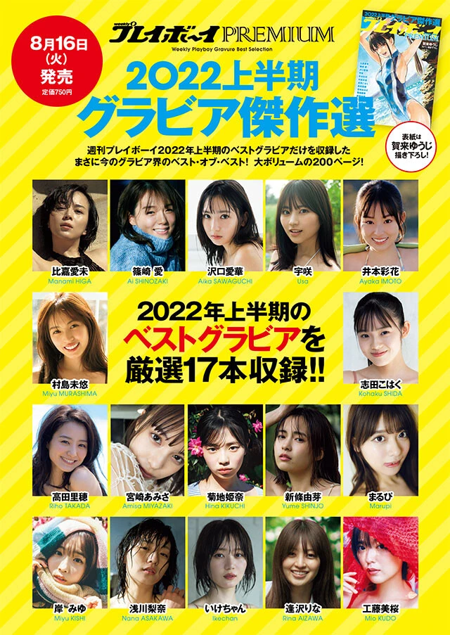週プレが贈る『2022上半期グラビア傑作選』。 今年前半、誌面を彩った美女たちが大集合! レジェンドグラドル、現役アイドル、特撮ヒロイン、 カリスマインフルエンサーに新進女優などなど、 厳選された17人のグラビアをプレイバックできる一冊! 賀来ゆうじの描き下ろしカバーが目印です!!