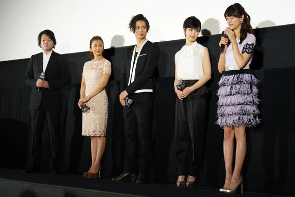 『黒執事』で水嶋(中央)の映画復帰を支えた(左から)大谷監督、優香、剛力、山本18日、映画『黒執事』の初日舞台挨拶に、水嶋ヒロ、剛力彩芽、優香、山本美月、大谷健太郎監督が登壇した。