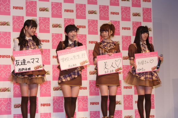 娘とお母さんが一緒にAKB48のメンバーになる可能性も? 新企画「大人AKB48」の募集がスタートした「30歳以上の新メンバー募集」というAKB48初の試みが、4日、都内で発表され、会見に渡辺麻友、島崎遥香、岡田奈々、西野未姫の4人が出席した。