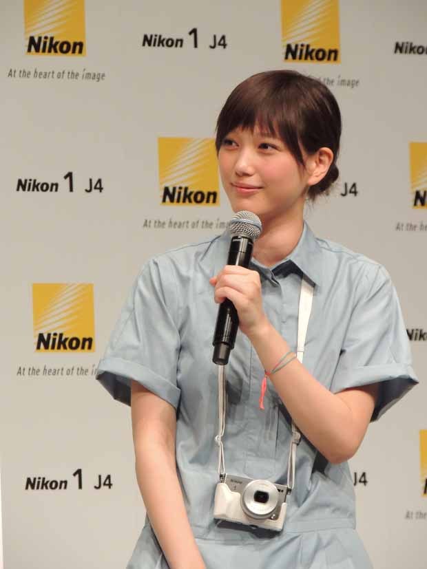 プライベートでも愛用しているというNikon 1 J4を持って登場した“カメラ女子”の本田翼。いつも愛犬を撮影しているそうだ10日、都内で行なわれたニコンのレンズ交換式アドバンストカメラ「Nikon 1 J4」のプレスイベントに、モデルや女優として活躍する本田翼が出席した。