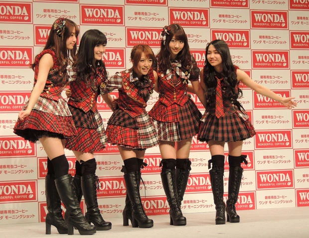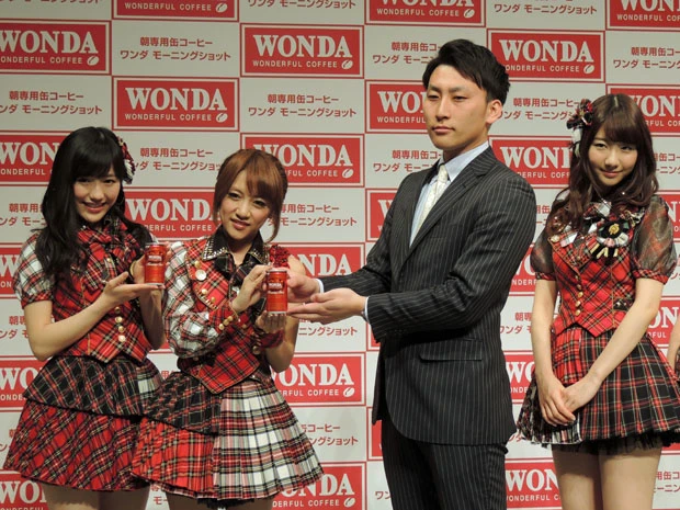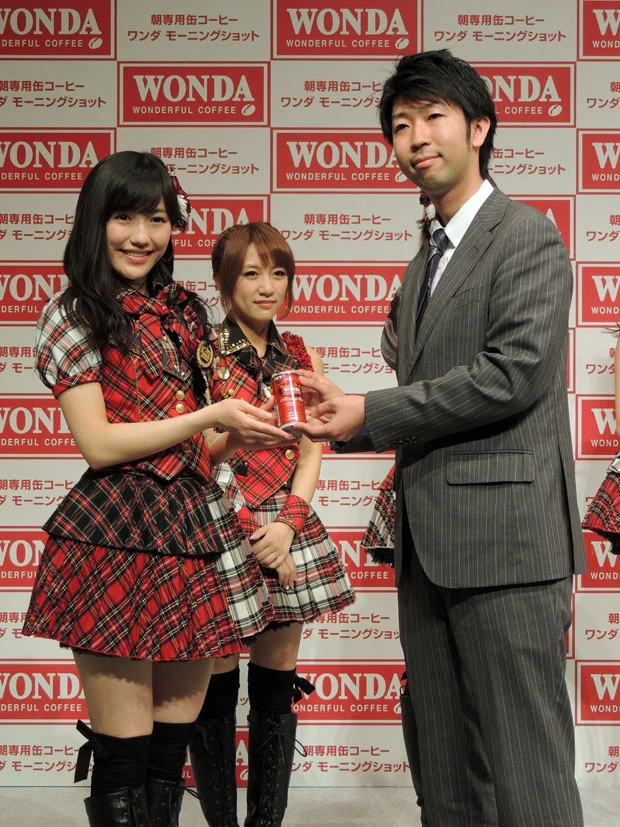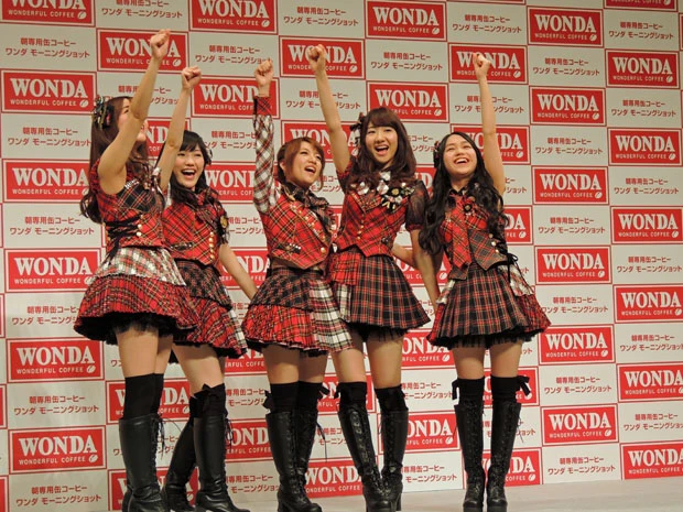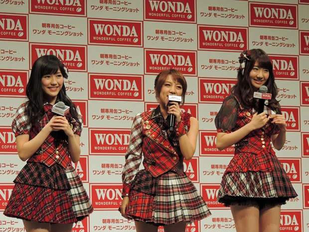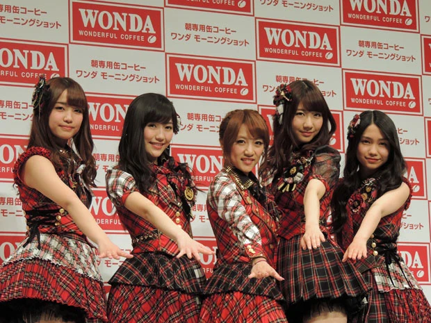 「ワンダ」の新CMに登場するAKBメンバー。左から加藤玲奈、渡辺麻友、高橋みなみ、柏木由紀、田野優花AKB48の高橋みなみ、渡辺麻友、柏木由紀、加藤玲奈、田野優花の5人が、15日、CMキャラクターを務めるアサヒ飲料「ワンダ」の「WONDA×AKB48 新生活のサラリーマンを応援イベント」に出席した。