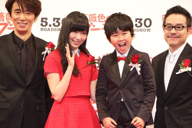 大分県出身の指原莉乃とユースケ・サンタマリア。監督いわく「日本が誇るテキトーなふたり」だそうだ『勇者ヨシヒコ』シリーズ、『HK/変態仮面』などを手がけた奇才・福田雄一が脚本、監督を務める映画『薔薇色のブー子』が5月30日より公開。それに先駆け、ファンに向けた試写会が15日、都内で行なわれ、主演のHKT48・指原莉乃、福田監督のほか、出演者のユースケ・サンタマリア、鈴木福、田口トモロヲ、ムロツヨシらが舞台挨拶に登場した。