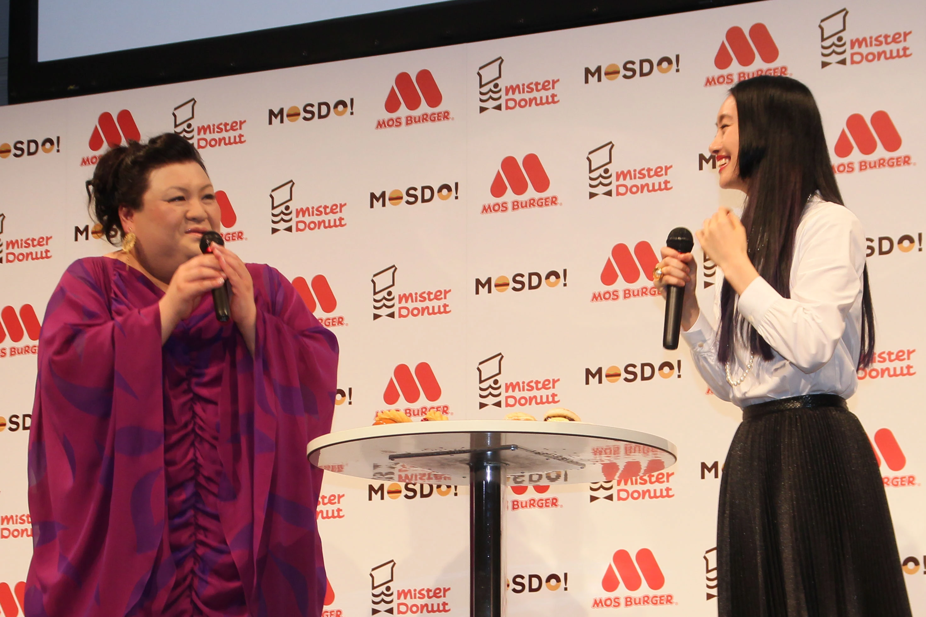 忽那が渡した制服にマツコは「7号ってすごいわよ。ももくらいよね、(私が)フィットするの」と改めて自分の大きさを実感27日、都内で行なわれたミスタードーナツとモスバーガーのコラボレーションブランド「MOSDO!」の新商品&新CM発表会に、CMキャラクターを務める女優の忽那汐里(くつなしおり)とタレントのマツコ・デラックスが出席した。