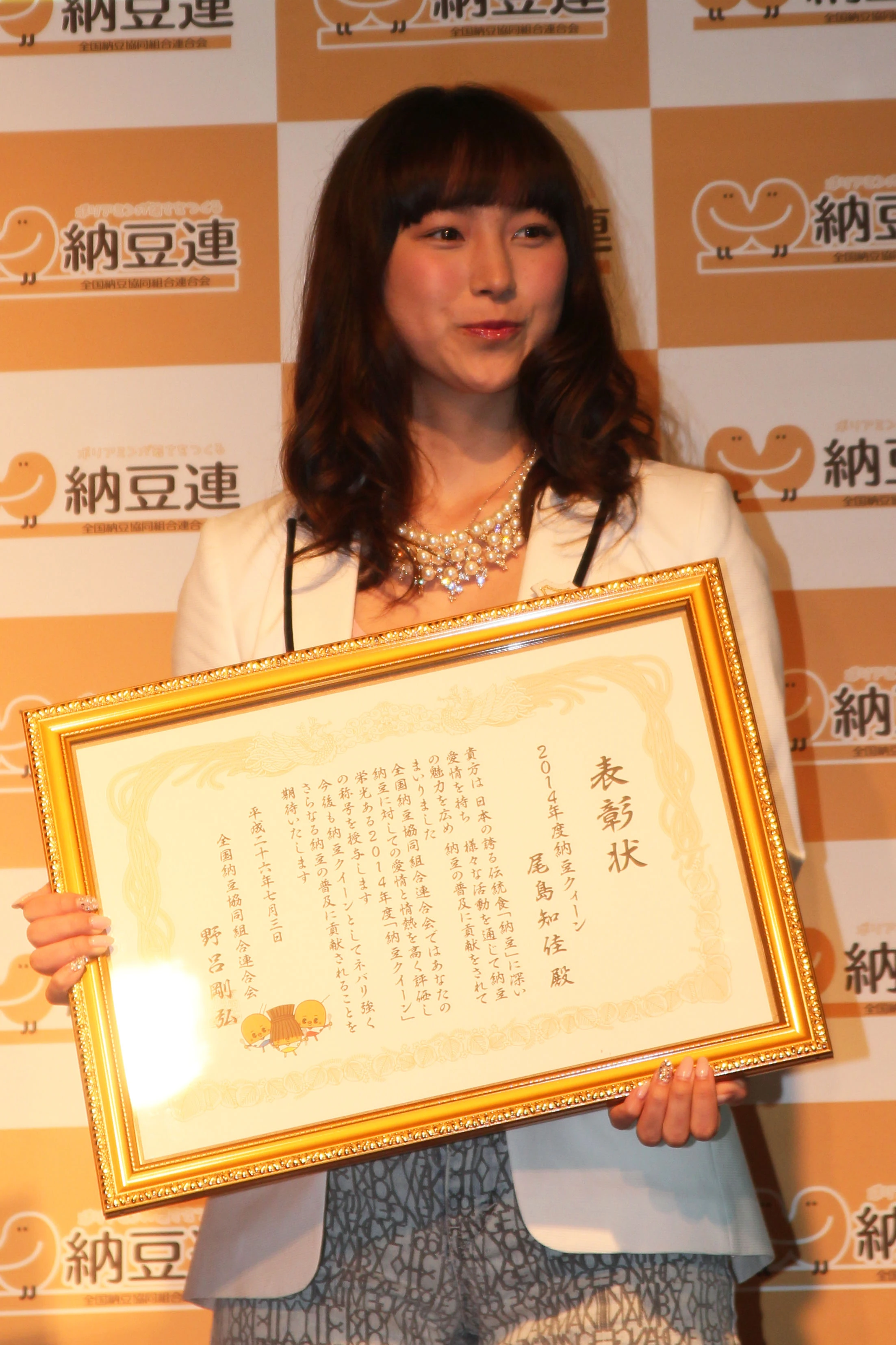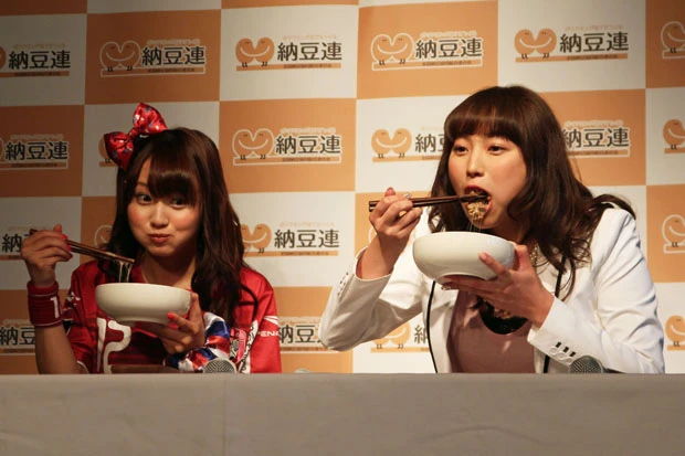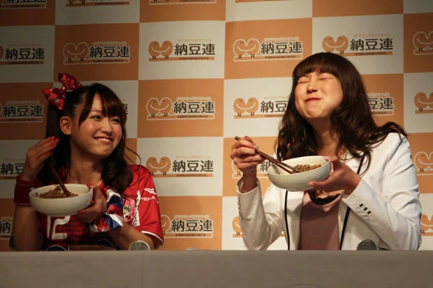 家族や「アイドリング!!!」メンバーなど周囲の人にも勧めて、納豆をアピールするという2人3日、都内で行なわれた全国納豆協同組合連合会が主催する「7月10日『納豆の日』記念 2014年『納豆クイーン』表彰式」に、女優の桃瀬美咲とアイドルグループ「アイドリング!!!」の尾島知佳が出席した。