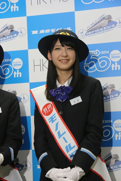 新型車両10000形の出発式で一日駅長を務めた指原はじめ森保、兒玉、松岡のHKT48メンバー浜松町と羽田空港を結ぶ東京モノレールに新型車両の10000形が登場。18日、羽田空港第2ビル駅で出発式が行なわれ、1日駅長となったHKT48の指原莉乃(さしはらりの)、兒玉遥(こだまはるか)、松岡菜摘(なつみ)、森保(もりやす)まどかの4名が出席した。