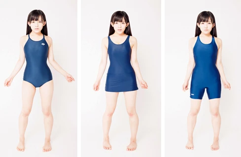 【画像左】新スク 競泳タイプ【画像中】第3のスク水 スカートタイプ【画像右】第3のスク水 スパッツタイプ