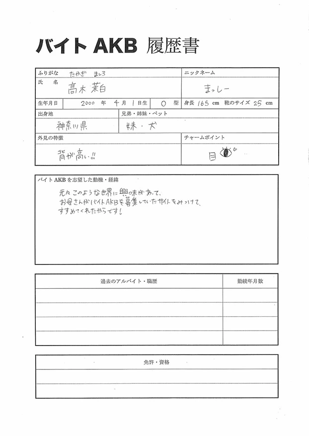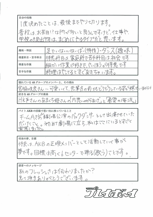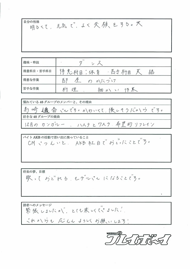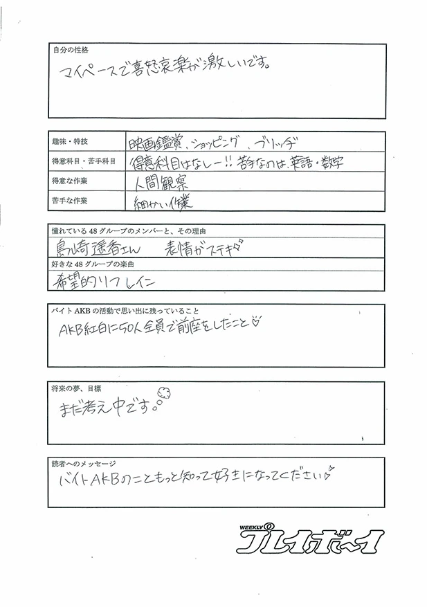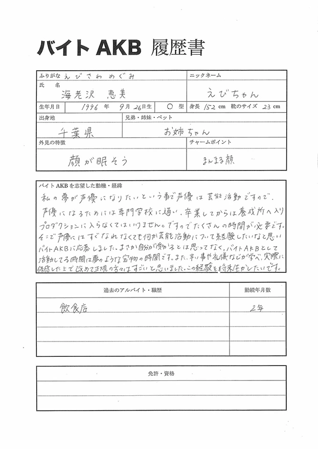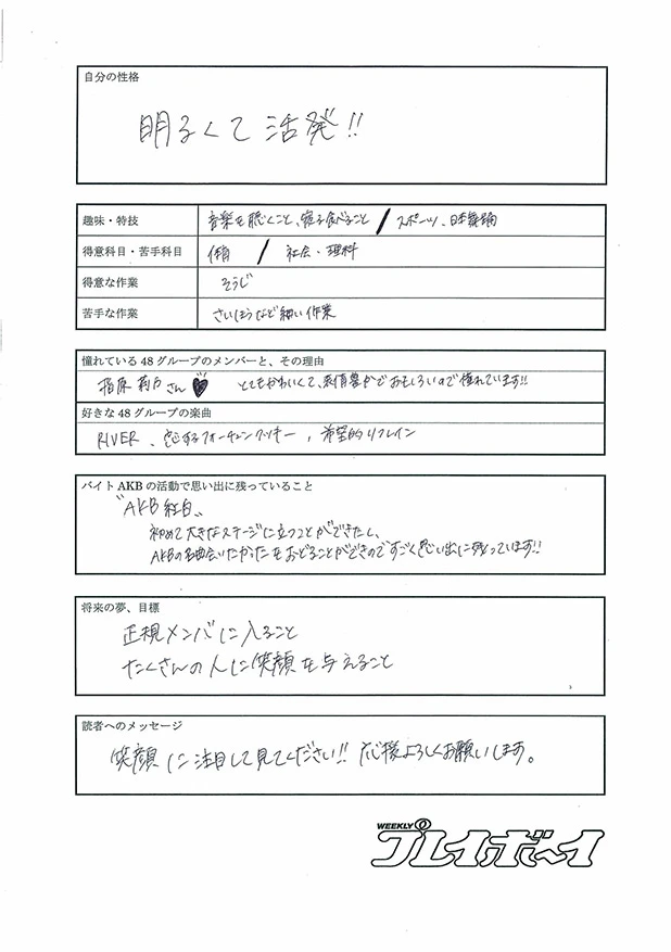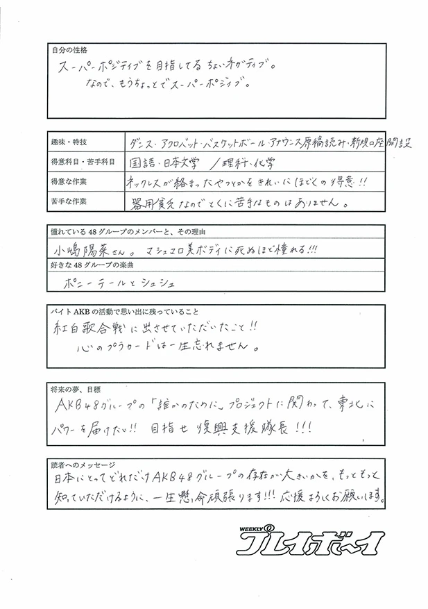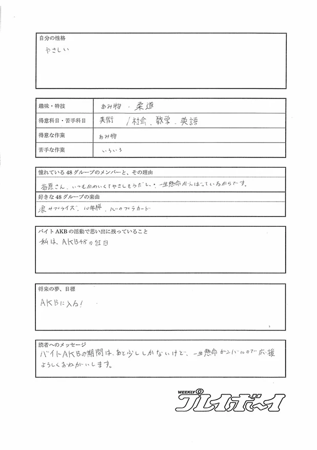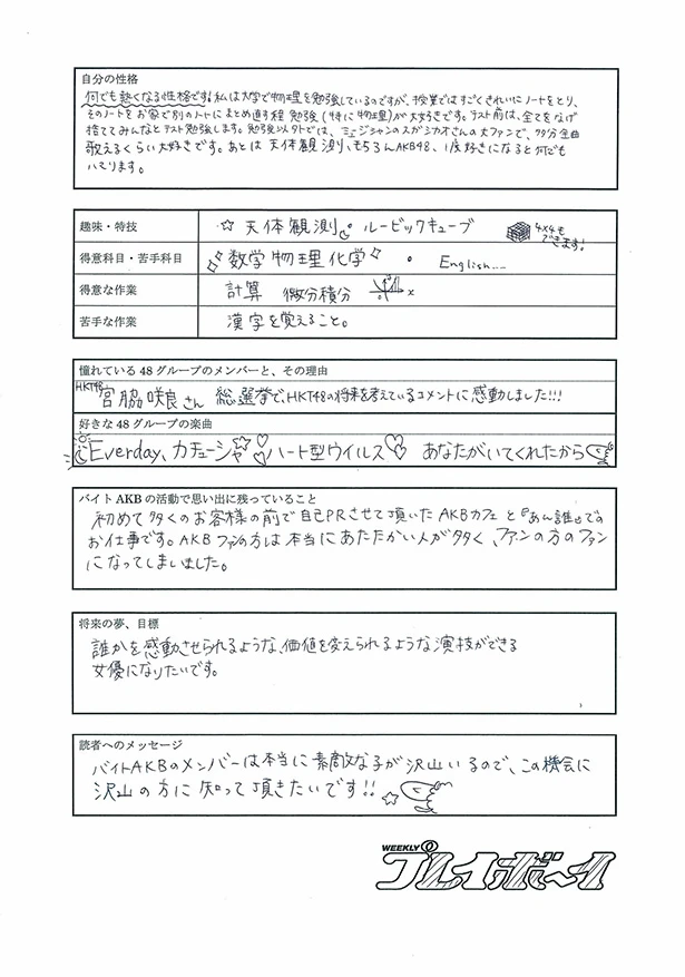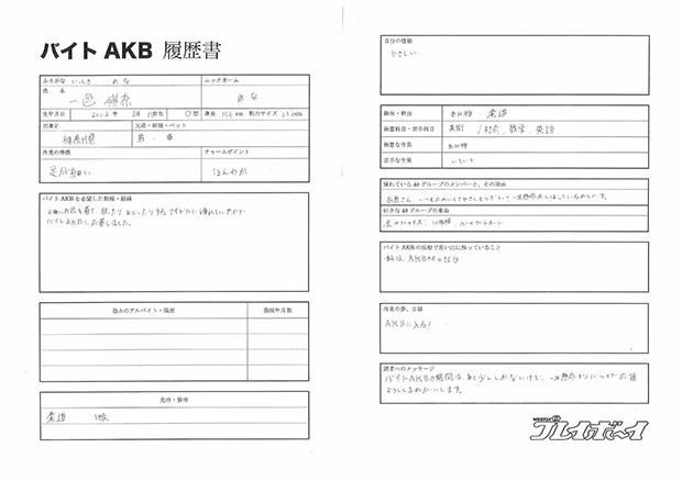 そこで、「週プレNEWS」では、彼女たちの手書きの履歴書をまるごと大公開! 本誌ではスペースの都合でお届けできなかったお宝情報がズラリ。これをチェックして、キミだけの専属アルバイトを見つけちゃおうぜ!
