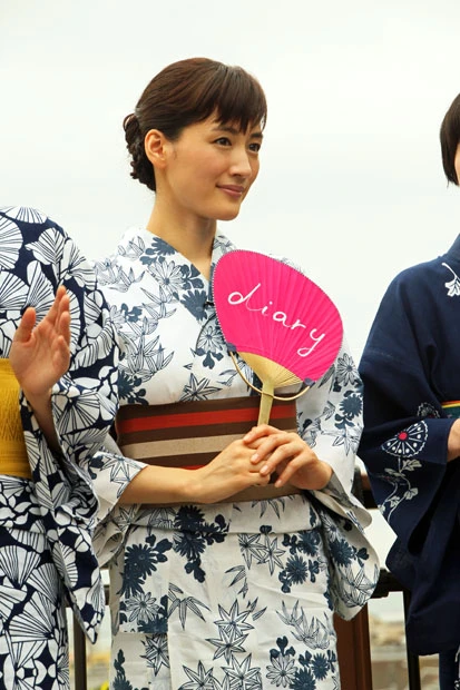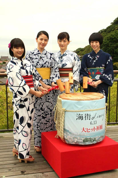 この日、行なわれたのは13日(土)から全国公開される映画『海街diary』(是枝裕和監督)のヒット祈願イベント。鎌倉を舞台に4姉妹の暮らしを描いた物語は2013年にマンガ大賞を受賞した同名原作(著:吉田秋生)も人気作で、映画化が決まると大きな話題に。当然、この豪華キャストも注目を浴び、先月5月にはカンヌ国際映画祭にも出品された。
