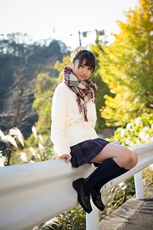 莉音 制服のシーンです。もう少しで(高校を)卒業しちゃうので。しかもこんなにキレイに撮ってもらえて嬉しいです。
