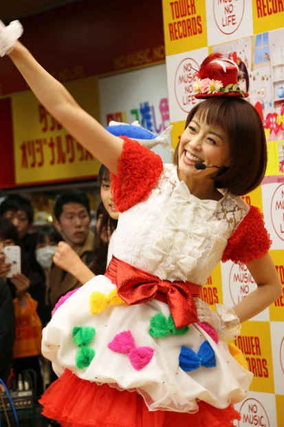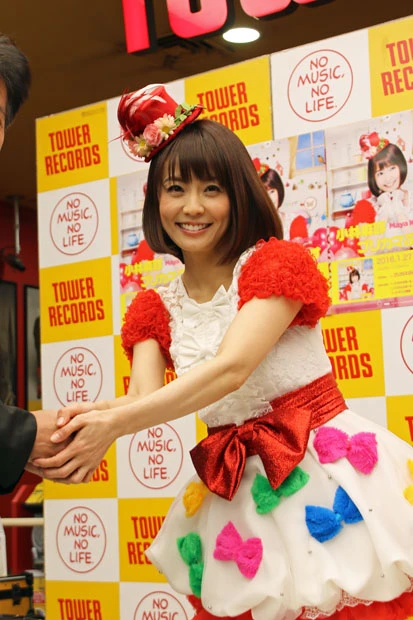 アイドルさながらのかわいらしい衣装で登場した小林麻耶アナフリーアナウンサーでありながらバラエティー番組でも活躍する小林麻耶が27日、「ブリカマぶるーす」で歌手デビューを果たし、CD発売記念イベントを行なった。