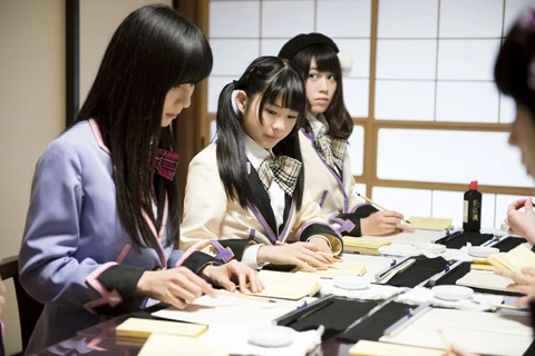 境内から本堂まで、しっかりと掃除をしたアイカレメンバー。続いて、彼女たちが行なったのは、「写経」。