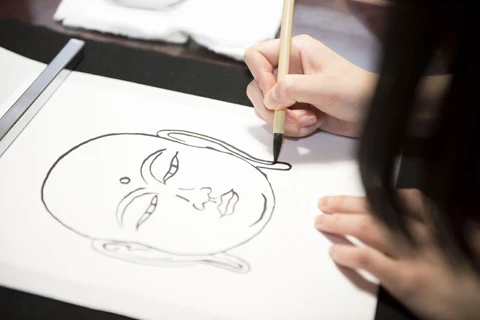 写経に続いて、40分。ゆっくりと筆を走らせるメンバーたち。丁寧に描く者、素早く描く者と様々だ。できあがった絵も、筆跡の太さから、線の揺れ具合から、それぞれ個性が出ている。