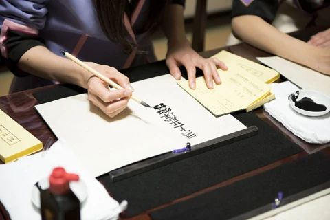 シンと静まり返る部屋の中で、ただ黙々と写経をはじめるメンバーたち。しかし、なかなかうまくいかない。
