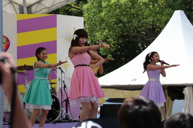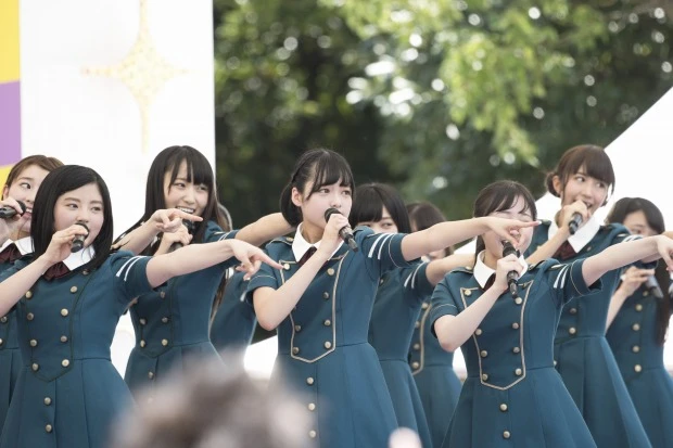 ビーイングが生んだアイドルグループ。オープニング、どこかで聞いたことある曲だなと思ったら、アニメ『名探偵コナン』のオープニング曲・小松未歩の『謎』のカバーだった。2曲目は9月7日に発売される『恋のB・G・M~イマハ、カタオモイ~』。そして最後が『ろっぽんぎ体操~愛コトバはジャンパラポン!~』。曲が始まる前にKARENが「サビに『欅坂』というワードがあるので、後ろにいる欅坂46ファンの皆さんも一緒に盛り上がってくださ~い!」と、次の欅坂46を見るために集まっていたファンにもしっかりアピール。会場がひとつになって元気に盛り上がっていた。