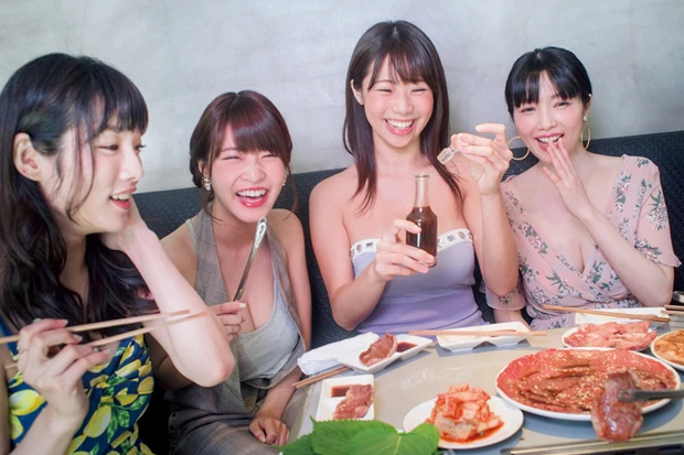 肉食女子部(左から)今野杏南、岸明日香、鈴木ふみ奈、森下悠里、星名美津紀、橘花凜お肉をこよなく愛する肉食女子が都内の焼き肉店に集結--。