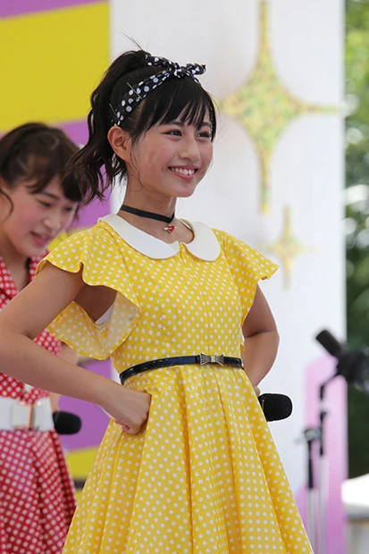 La PomPonのセンター。圧倒的にカワイかったんですよ。まさに、お嬢さまな感じ!「このコは見っけたな」って思いました。また、彼女の黄色い服が真夏の太陽に照らされてキラキラしてました。白い笑顔、白い歯、衣装と髪の毛の感じがバツンとハマっていたんです!