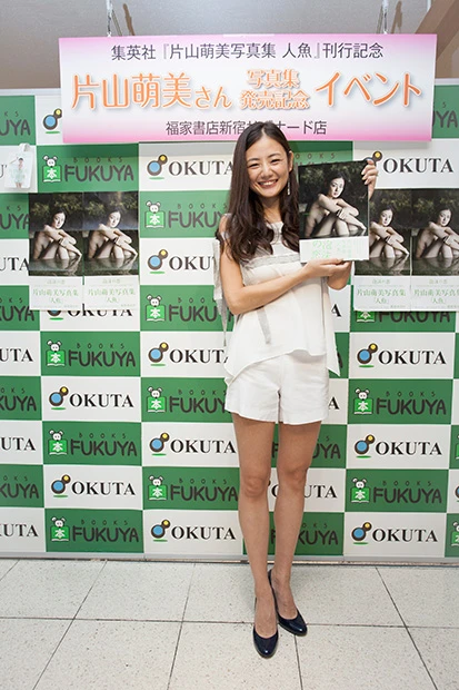 都内でファースト写真集の発売記念イベントを行なった片山萌美男たちを扇情させるグラビアで話題沸騰中の女優・片山萌美がファースト写真集『人魚』(小社刊)を発売。20日(月)、都内で発売記念イベントを行なった。