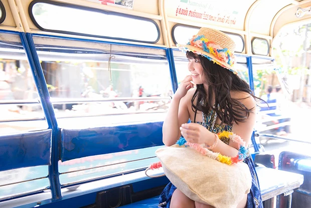 6月半ばにタイのサムイ島で撮影した今回の作品。「旅行気分で行ったので、なお楽しめました」と、まずは余裕のコメント。テーマはセルフプロデュースで「衣装さんをつけないで、私が全部どういう水着がいいかなっていうのを考えて、いくつか作って、写真集になっております」とのこと。タイに着いてからも現地で衣装を調達し、自分でアレンジしたものもあるそうで、それほど関わったなら、ホントは大変な撮影だったんじゃないでしょうか。