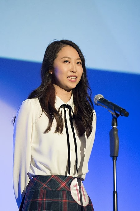 冒頭の自己PRでは、ほとんどのファイナリストがガチガチに緊張している中、「今回このような機会をいただいて、演技やダンスの楽しさを知ることができました。これまでのようにドラマや映画を観るだけではなく、自分でやることで人に喜んでもらえるような、そんな存在になりたいなと思いました」と、やや大阪弁のイントネーションながらも(笑)落ち着いたコメントで会場の視線を集めていた美少女だ。