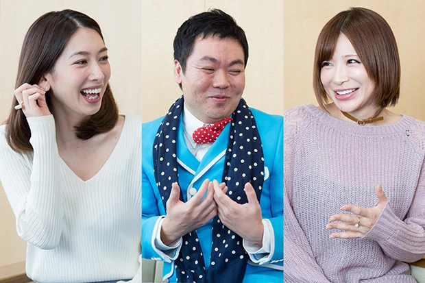 結婚適齢期だけど運命の相手に出会えないのが悩みの手島優(右)&小林恵美(左)がブサメン芸人・くじらに恋愛相談誰も知らない、その世界(釣りやビリヤード)では有名な人のモノマネをネタとし、細々と活躍していた芸人・くじらが、今や多くの人々の恋の悩みに答える“恋愛マスター”としてツイッターで大人気となっている。