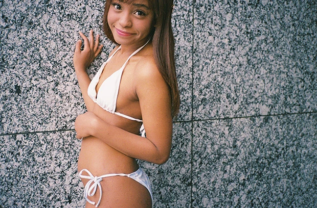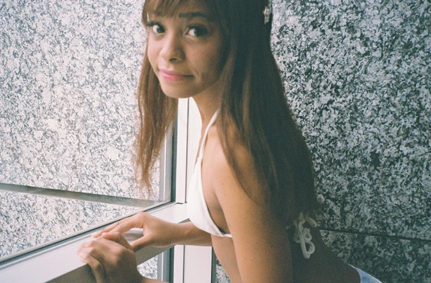 あみな なんか、アメリカにいる頃にアイドルのグラビアを見て、綺麗と思ってやってみたいなと思っていました。やってみたら楽しかったです。
