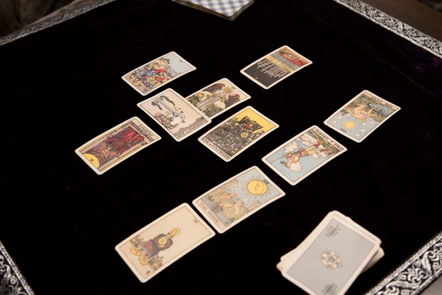 篠原 じゃあ、「現状」「過去」「近未来」「未来」を示す位置にどんなタロットカードが出るかで運勢を見る“ケルト十字法”で占いますね(カードをめくっていく)。