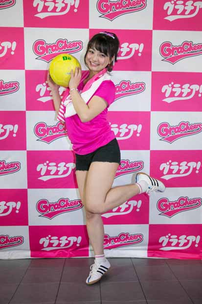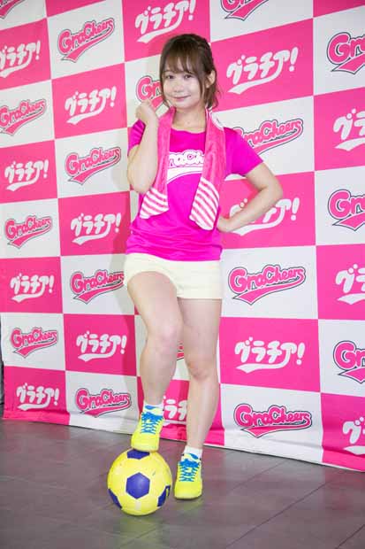 お披露目会が終わるとファン50人を招いた交流イベントで「ミニPKゲーム」を開催。4チームに分かれ、ゴールに立てられたポールを倒すというゲームで、チーム分けはグラドルたちの腕立て伏せによる体力測定で決められたが、青山は2回、鈴木に至っては腕がわずかしか上がらず0回で、ファンらを笑わせていた。