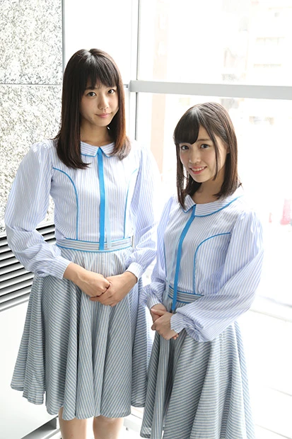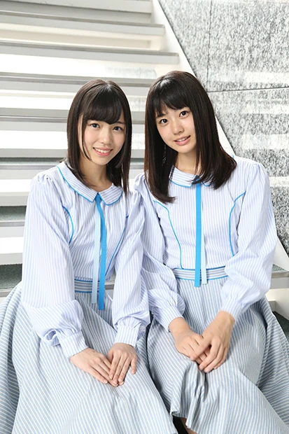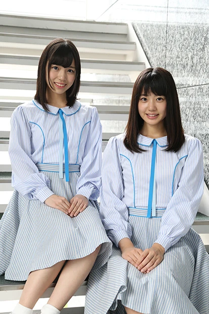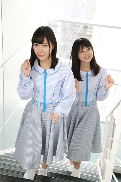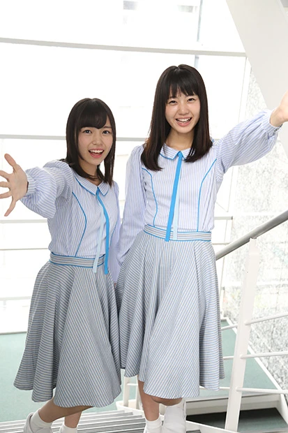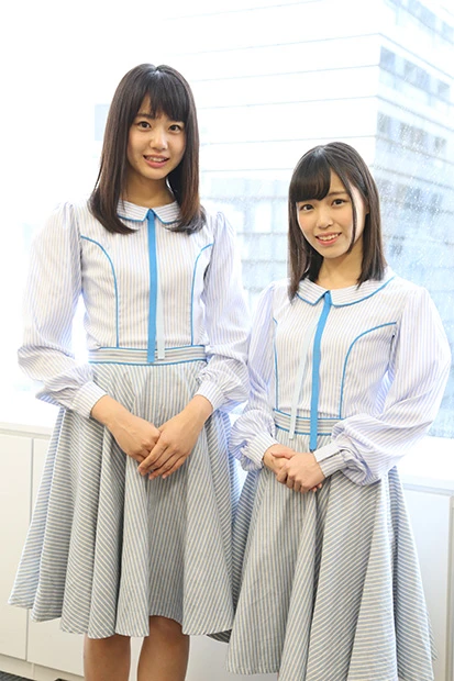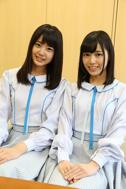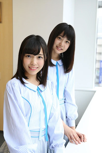 STU48から瀧野由美子ちゃんと岩田陽菜ちゃんが週プレ編集部を訪問! 左から岩田陽菜ちゃん、瀧野由美子ちゃん