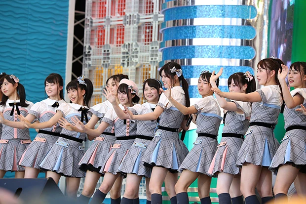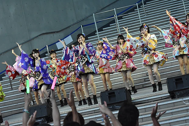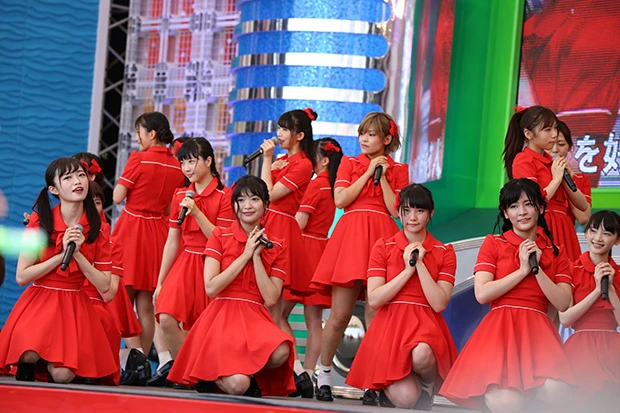 今年のAKB48選抜総選挙で大躍進を見せたNGT48。選挙でグループの顔となった荻野由佳センターによる『NGT参上!』でライブがスタート。MCでは柏木由紀が「久しぶりにこういう現場に来てテンションが上がってるおばさん」と自虐ネタ。だが確かに年齢は上でもパフォーマンス力は48グループのトップ。最近はライブも少ないため、動く柏木の姿が見られる貴重な舞台となった。
