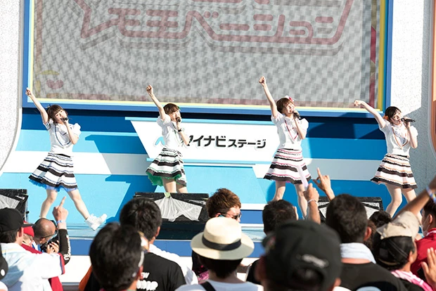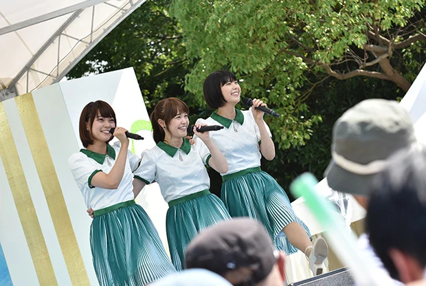 「こんにちネギネギー!」というおなじみの挨拶で登場したのは、7月に結成15周年を迎えたNegicco。リーダーのNao☆が「最後まで楽しんでいってくれますか? かえぽ(Kaede)いってみよう!」と促すと、Kaedeは「繰り返す毎日に♪」と代表曲『圧倒的なスタイル』をアカペラで歌い出す。3人はそのまま、曲の最後まで伴奏なしで歌唱。間奏では掛け声のみでリズムをとり、おなじみのラインダンスも行なった。