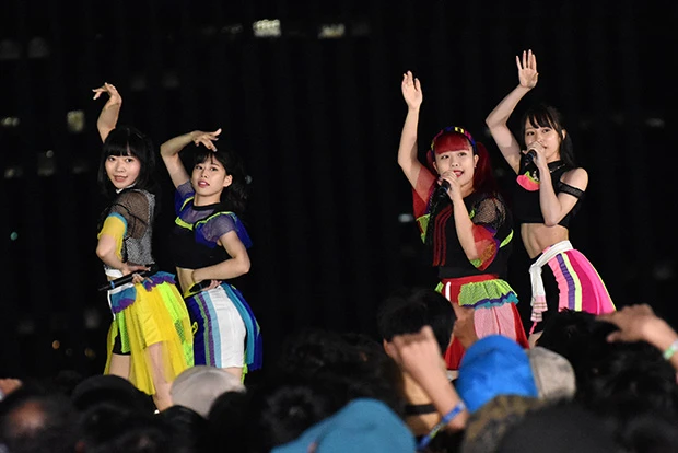 まず言っておこう。「凄いものを観てしまった」――。今年結成された「サイケデリックトランスで踊り狂えるアイドル」。メンバーはヨネコ、セイセイ、ミミミユ、コマチ、アマリ、コテジュンで構成された6人。ヨネコは元BELLRING少女ハートを卒業した甘楽(かんら)が新グループ結成のタイミングで改名。そんな彼女たちが挑んだ初のTIFにカラフルな原色の衣裳で登場した。