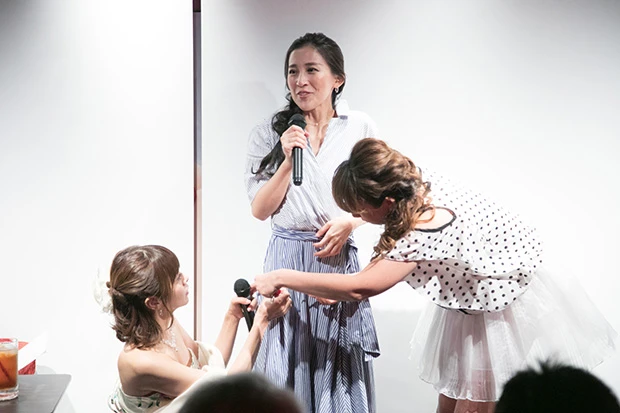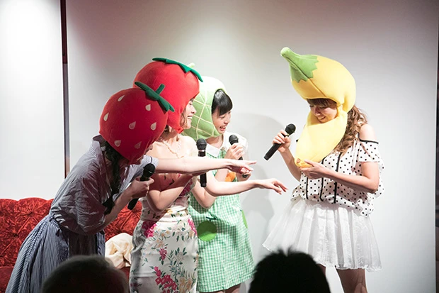 さらには本日のシークレットゲスト、メロン界のアイドルこと山口めろんちゃんとの“フルーツ占い”を駆使した新旧アイドル対決や、観客を巻き込んでの“プレゼントor罰ゲーム付き”クイズ大会などトータル約2時間にわたる企画盛りだくさんのステージは、すっかり彼女らのノリに馴染んだ観客たちの拍手喝采(かっさい)が飛び交う大盛況のうちに幕を閉じた。