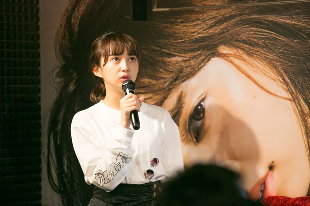トークの後はサイン入り生写真のプレゼントやサイン入りTシャツの抽選の他、20人ごとの記念撮影へ。彼女との至近距離での撮影に参加者は皆、隠しきれないほど緊張。「こんなに近くで、嬉しい以上にびっくりしてます」(30代・男性)と感激しつつ喜んでいた。