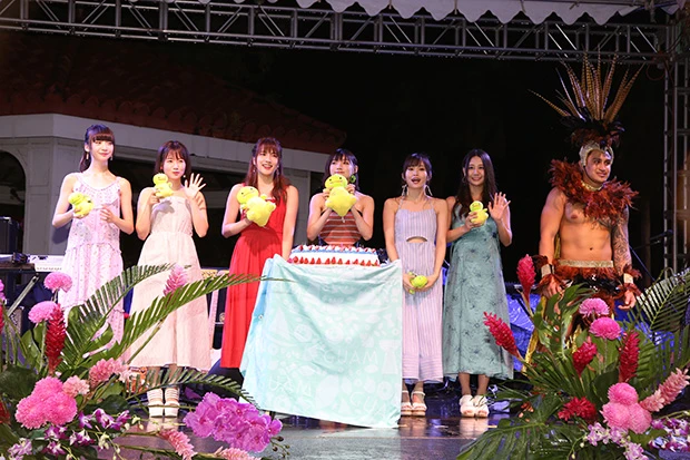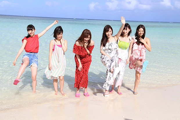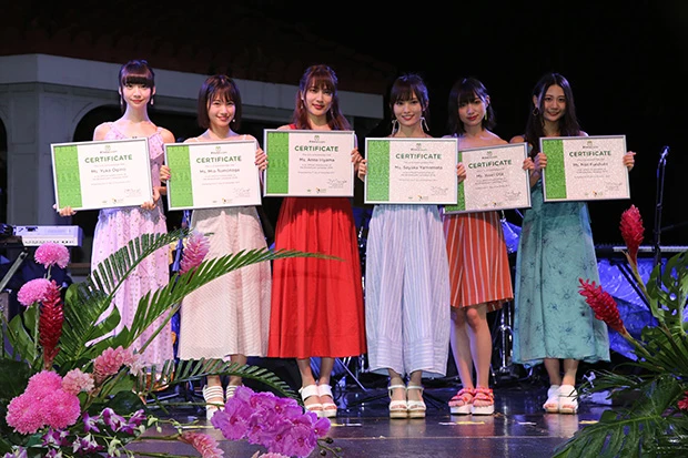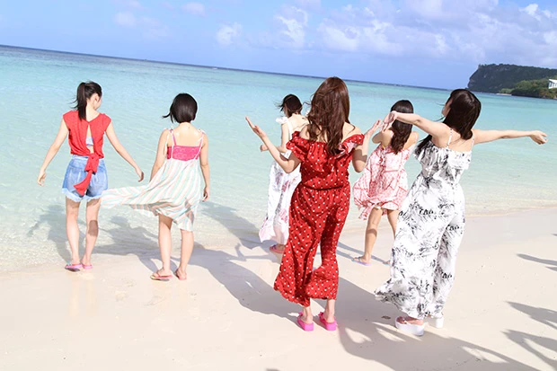 「#instaGuam」キャンペーンキャラクターに就任AKB48グループのメンバーたち。左から荻野由佳(NGT48)、朝長美桜(HKT48)、入山杏奈(AKB48)、山本彩、太田夢莉(NMB48)、古畑奈和(SKE48)