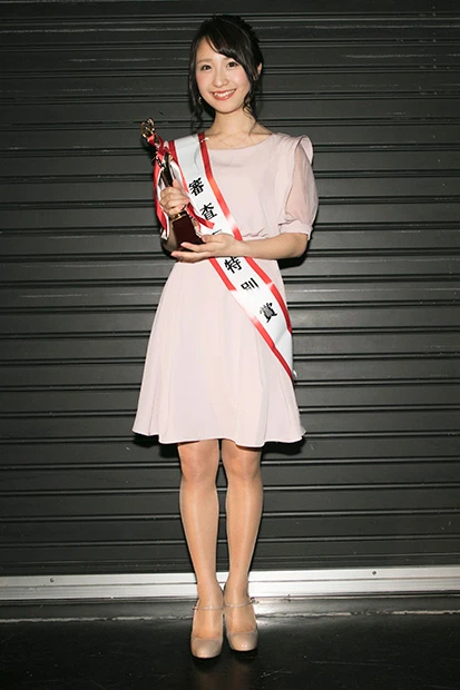 MCを務めるカラテカ・入江のトークで落ち着きを取り戻し、「さっきまではルンルンして楽しかったんですけれど、(受賞が決まって)嬉しくて…。初めてお会いする方も多いのにこんなに泣いている姿で申し訳ないです」と語ったが、最後に会場へ向けたメッセ―ジでは再び声をつまらせつつ「一番よい賞をいただけて私は幸せ者です」と喜びを素直に表現。