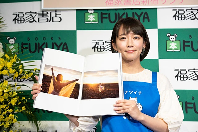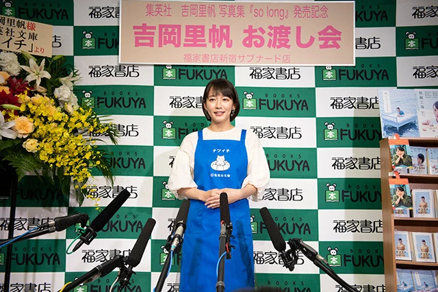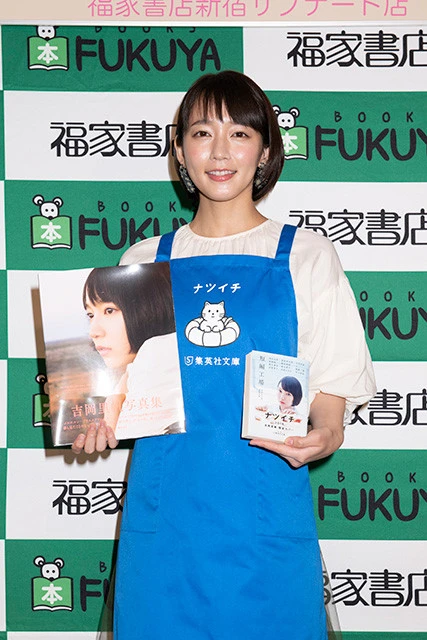 吉岡は、キャンペーンキャラクターを務める集英社文庫の夏フェア「ナツイチ」のエプロンを身につけて登場。