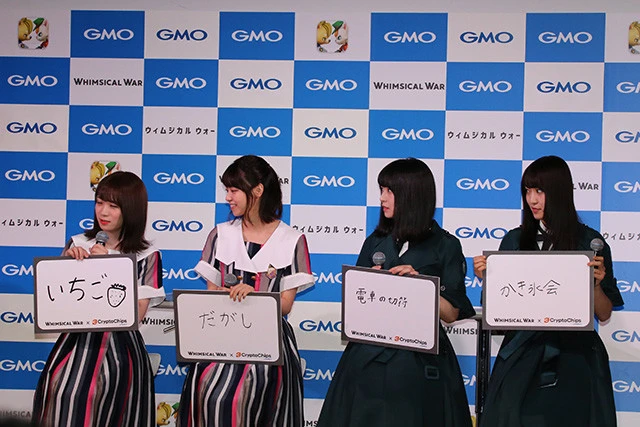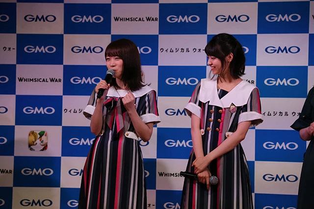 乃木坂46の西野七瀬と秋元真夏、欅坂46の長濱ねる、菅井友香が7月27日(金)、都内で行なわれたスマートフォン向け陣取りバトルゲーム『ウィムジカルウォー』のPRイベントに登場した。