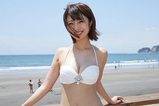 本日の水着を選んだポイントは「全方位紫外線を跳ね返す、白メインで!」とのことだったが、それも功を奏しビーチではひと際まぶしい輝きを放っていた。「そろそろオトナな年齢なんで、新人のコには出せないような大人な色気を出していきますよ! 今日出てました?」と爽やかに汗をぬぐう真奈美ちゃん、大人のフェロモンストップ高です!