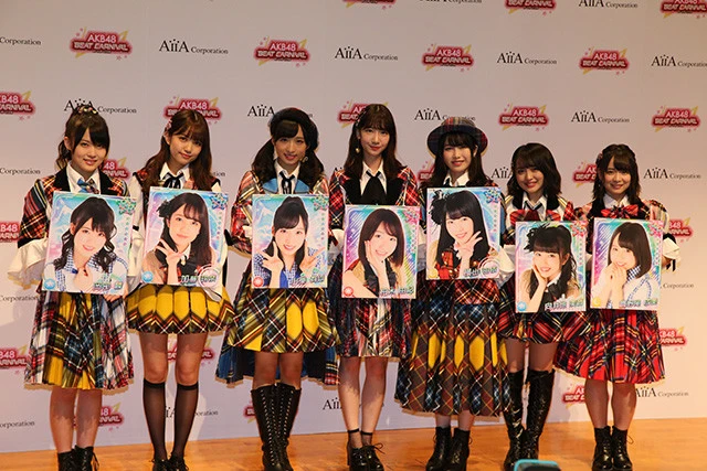 新作音ゲー『AKB48ビートカーニバル』の発表会が8月16日(木)、都内で行なわれ、AKB48から柏木由紀、横山由依、小栗有以、向井地美音、加藤玲奈、倉野尾成美、岡部麟の7人が登場。