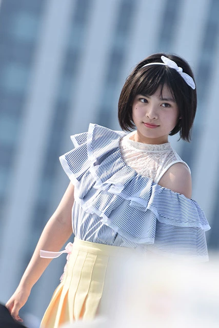 今回、初めてステージを見させていただいたんですが、細くて顔が小さくて、どんな瞬間も笑顔を絶やさない、まさに「ザ・アイドル」というコでした。浴衣っぽい衣装と、ちょうど歌っていた『初恋花火』という曲のせいですかね? 彼女を眺めながら「こんな美少女と花火大会に行けたら、最高の夏だろうな......」と、想いを巡らせてしまいました。