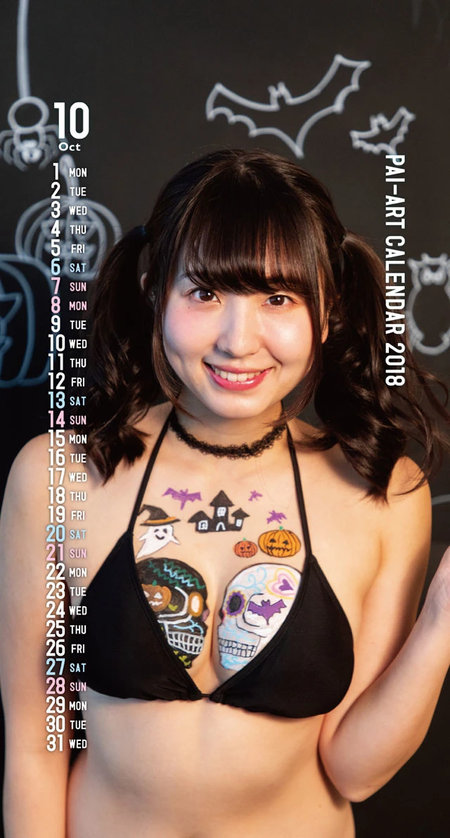 そこで、週プレNEWSでは、おっぱいをキャンパスにして描く、この"パイアート"を今年1月から12月まで待ち受け用カレンダーとして掲載、配信することに!
