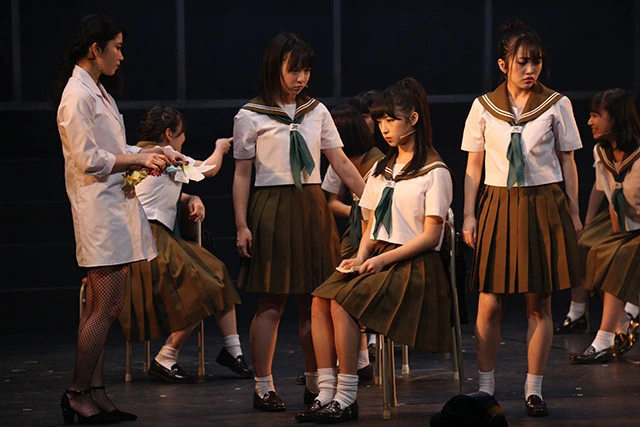 ドラマ版での大胆シーンが見どころのひとつになっていた、AKB48グループ総監督・横山由依の演じる"エロ先生"は舞台版にも登場。