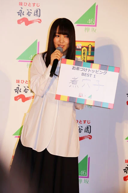 冒頭で永谷園ホールディングスの永谷泰次郎社長は、「お茶漬けの発売から70年。250億食売れているが、昨今は食べたことのない人が増えている。若者に影響力ある欅坂46がきっかけを作ってほしい」と期待を寄せた。