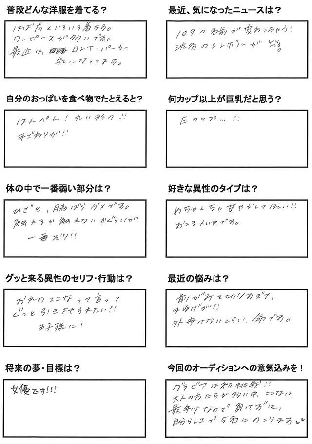 週プレNEWSでは、毎週のランキングベスト5の動画、そして編集部が出場者たちの中でも注目のグラドルを1人をピックアップ! 写真と直筆のアンケートで毎週紹介していく。