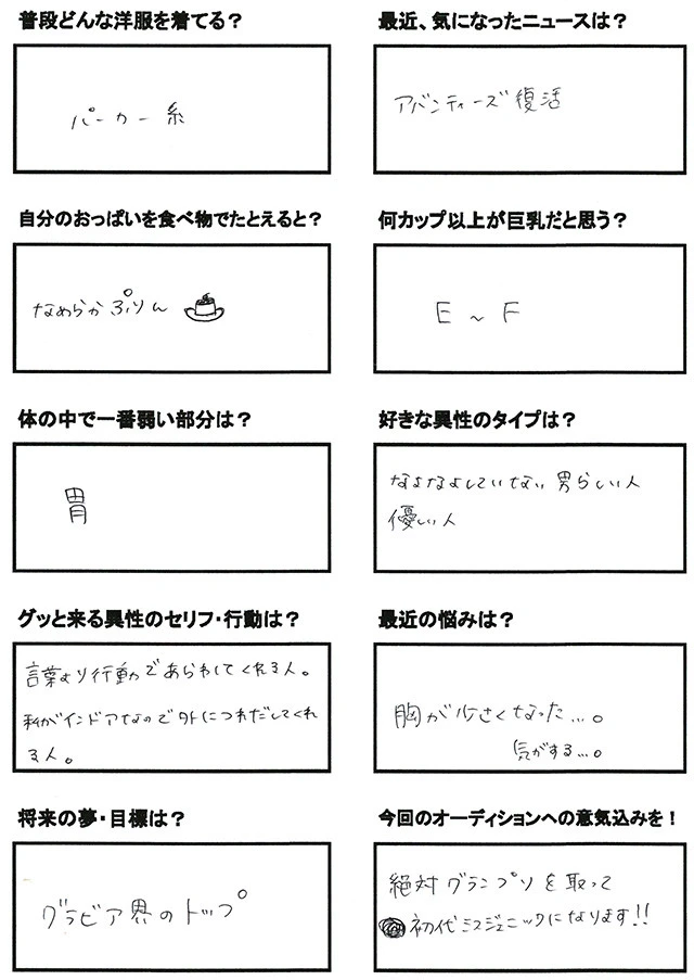 週プレNEWSでは、毎週のランキングベスト5の動画、そして出場者たちの中で注目のグラドルを1名を編集部がピックアップ! 写真と直筆のアンケートで毎週紹介していく。