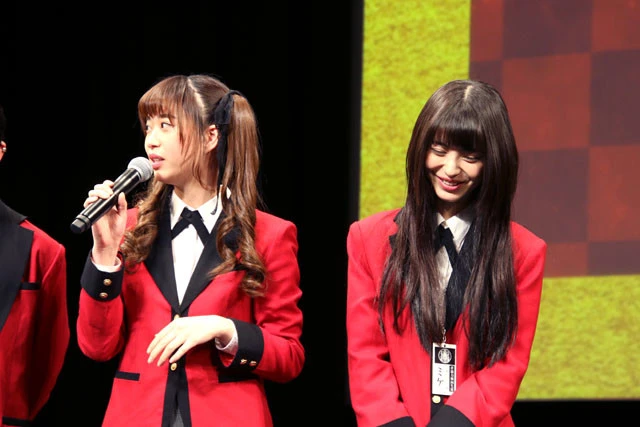 『映画 賭ケグルイ』の完成披露試写会が11日に東京都内で行なわれ、主演の浜辺美波、高杉真宙、森川葵、池田エライザらキャスト13人と、英勉(はなぶさ・つとむ)監督が登壇した。