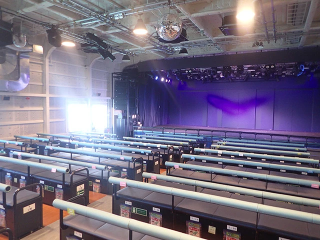 再び売店のフロアに降りて劇場内へ。キャパは300人弱とのことで、他の48グループの劇場とあまり変わらない。ただ船の形に合わせて、少々縦長になっている。ステージはちょっと高め。最前席に座ると、メンバーを少し見上げなくてはならない。