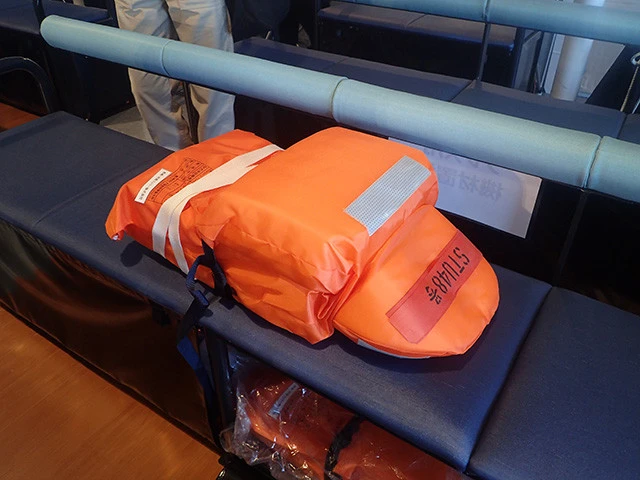 また、ちゃんとした船ということもあり、座席の下にはひとりにひとつ救命胴衣がある。万が一のことがあっても安心だ!