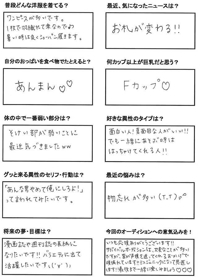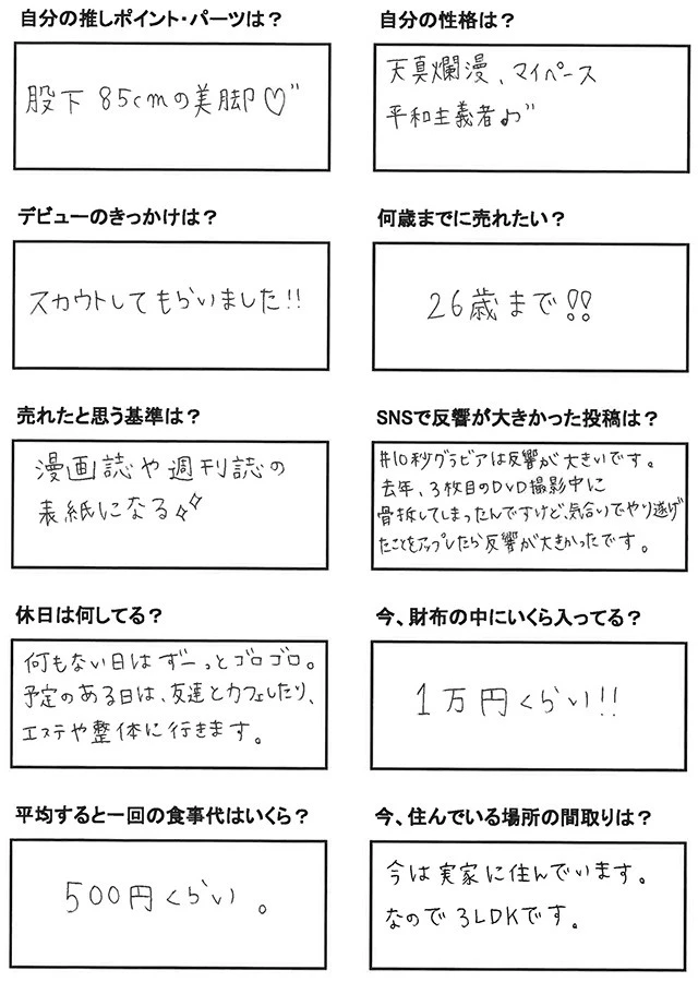 週プレNEWSでは、毎週のランキングベスト5の動画、そして出場者たちの中で注目のグラドルを1名を編集部がピックアップ! 写真と直筆のアンケートで毎週紹介していく。