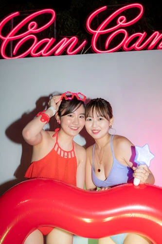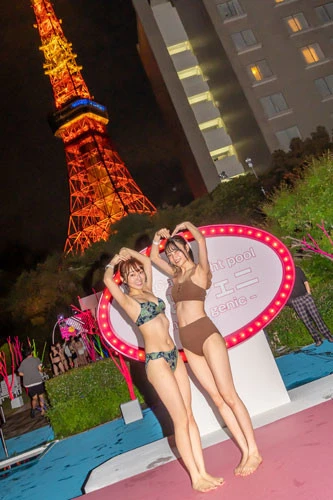ナイトプール自体初めてだというふたりは、華やかなアイテムやスポットが揃う会場に「いろんなアングルから、自分だけの動画が撮れそう! いますぐに動画撮ってSNSにアップしたい気持ちでいっぱい」(ゆうこす)、「東京タワーも入れながら、ボールをぱーって撮りたい」(菜波)と興奮した様子。